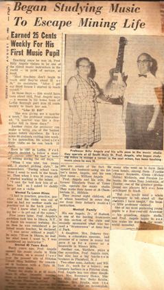 | Newspaper article featuring Professor Billy Angelo Stella and The Arcardians Orchestra 1925 |